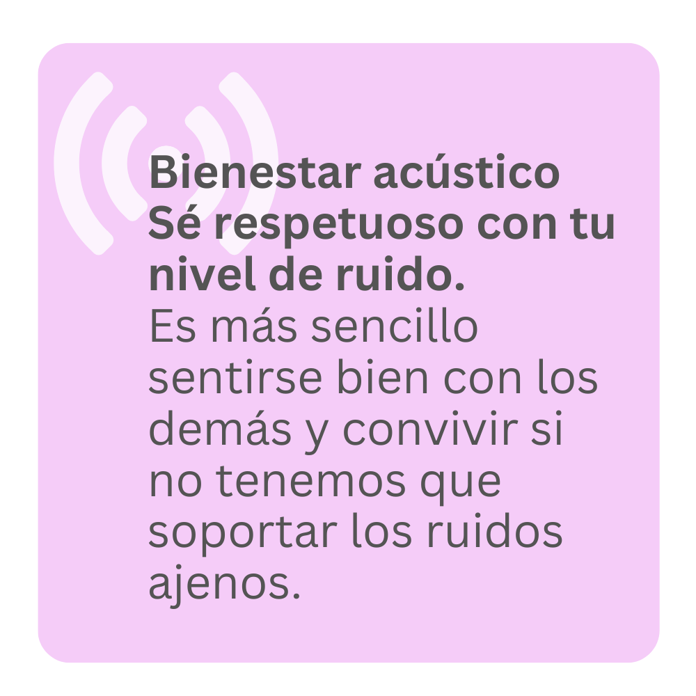 Esta semana te recordamos: Tanto en los espacios comunes como en las habitaciones es importante ser muy respetuoso con el nivel de ruido. Todos somos susceptibles de sentirnos mal con el ruido excesivo de los demás. Recordar que es más fácil concentrarse y optimizar el tiempo en el estudio si no nos distraemos por causas ajenas.
